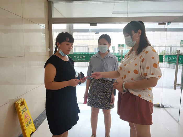 2021年7月5日,馨冠食品婦女聯(lián)合會成員賈艷、王越、王曼帶著各位婦女代表的祝福和關(guān)懷前往保定市第一中心醫(yī)院看望陳曼母親。由于疫情期間,醫(yī)院嚴(yán)禁探視,我們未能見到陳曼母親本人。